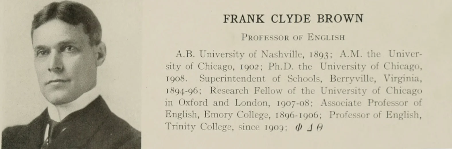 Frank C. Brown in Duke's yearbook The Chanticleer 1912
